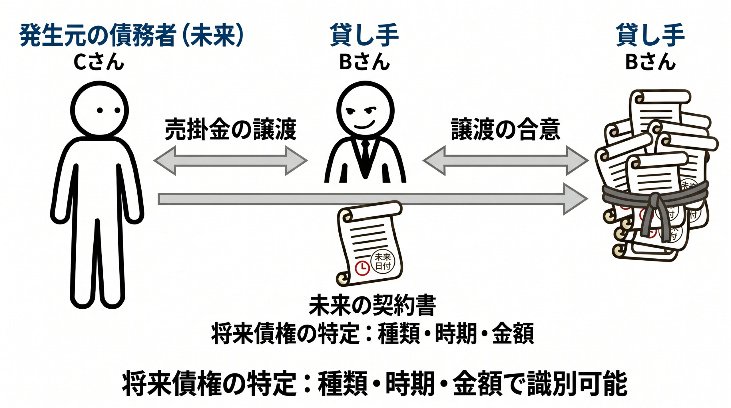 将来発生する債権をまとめて担保に入れる「集合債権譲渡」において、まず避けて通れないのが「どの債権を譲渡したのか」という特定の問題です。
