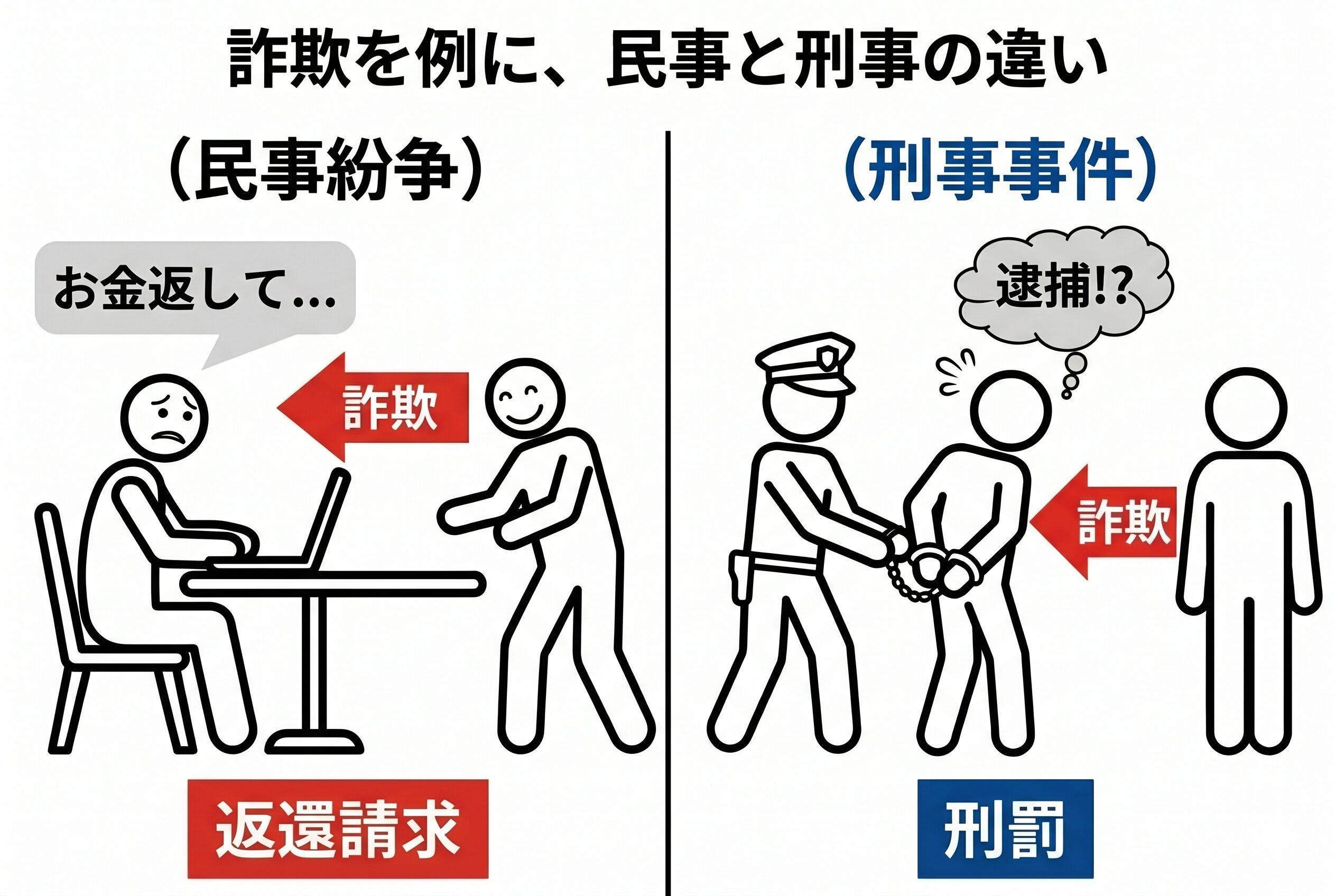具体例で比較!同じ事件でも「民事」と「刑事」は別次元