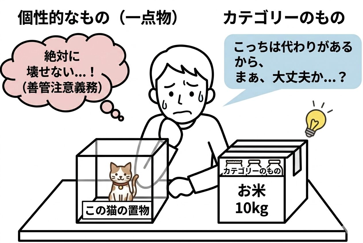 これにより、債務者がどの程度注意して保管すべきか(善管注意義務の有無)や、代わりの品で済ませてよいかどうかが決まります。