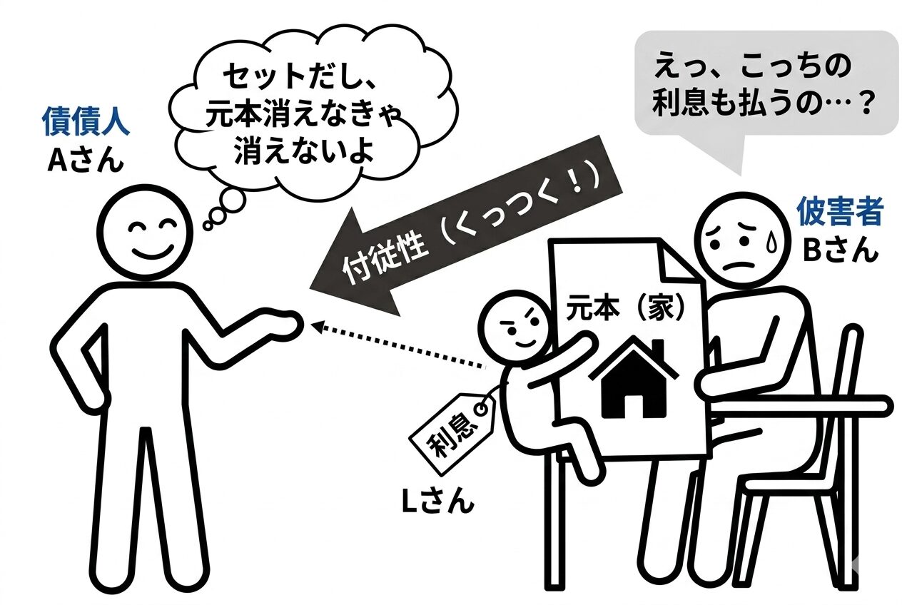ここでは、誰に決定権があるのか、あるいは主となる債権が消えたときに一緒に消えるのかといった、債権同士の関係性が重要になります。