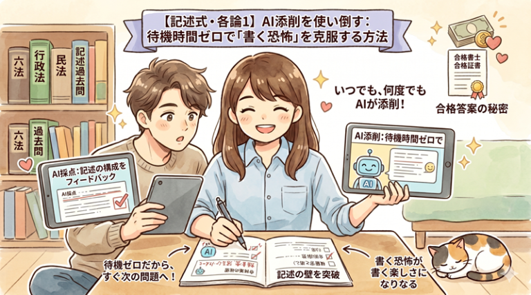 行政書士試験の記述式対策を始める際、多くの受験生が直面するのが「自分の答案が合っているか不安だが、人に見せるのは恥ずかしい」という心理的な壁です。このハードルが原因で記述対策を後回しにし、直前期に焦るケースは少なくありません。 この障壁をテクノロジーで解消したのが、スタディングや資格スクエアが導入している「AI添削」です。AIというツールを単なる採点機ではなく、トレーニングの「回数を稼ぐためのコー […]
