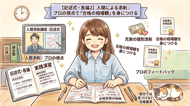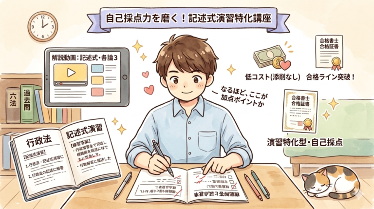 行政書士試験の合格ラインは300点中180点ですが、そのうち60点(20%)を占めるのが記述式問題です。 記述式は「わかっている」知識を、制限字数内で「正しくアウトプットする」という特殊な訓練を必要とします。 実は、通信講座によって記述対策のアプローチは大きく異なります。最近では、伝統的な「人間による添削」に加え、「AIによる即時添削」という新しい選択肢も登場しています。それぞれの特徴を理解し、自 […]