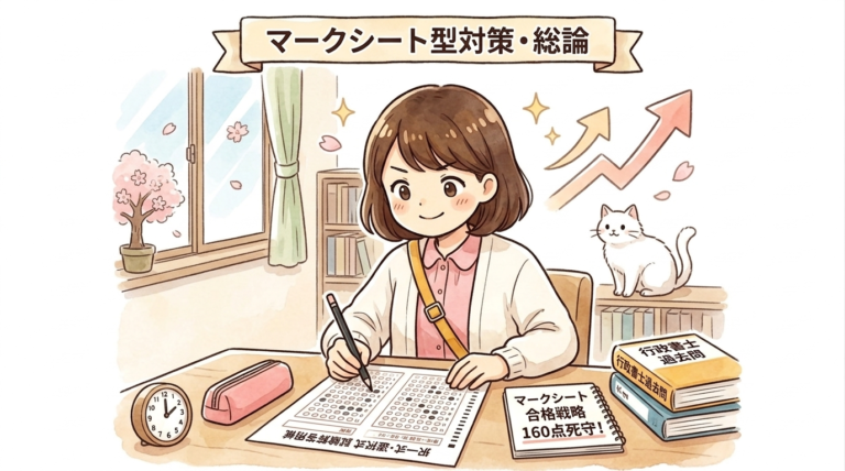 行政書士試験の全300点のうち、記述式を除いた240点分はマークシート形式(5肢択一式・多肢選択式)です。ここでいかに効率よく得点し、記述式に「時間と心の余裕」を残せるかが合否の分かれ目となります。 「必死に暗記しているのに、模試で点数が伸びない」 そんな悩みを解決する、マークシート攻略の3大戦略をまとめました。 1. 「現場思考力」で未知の問題をパズル化する 本試験では、必ずテキストに載っていな […]